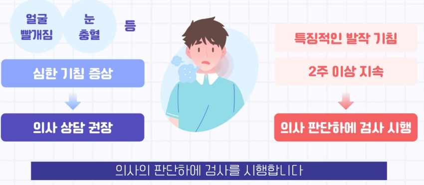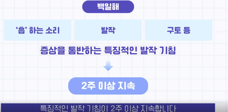 3) 회복기: 회복기에 들어서면 기침의 정도와 횟수 및 구토가 점차 감소하며 약 1~2주 지속된다.